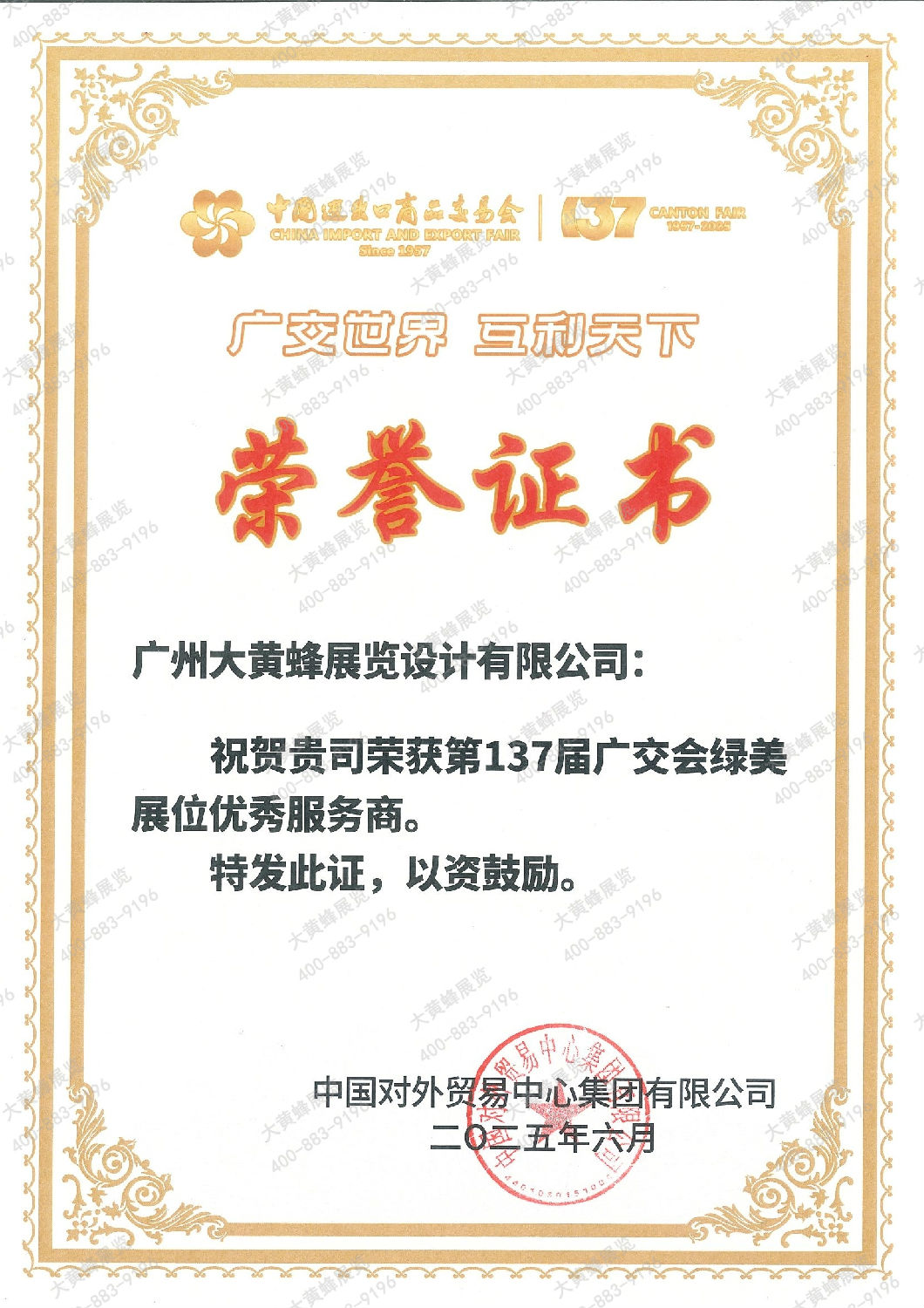 大黄蜂展览荣获展览服务(布展工程)A1(一级)资质